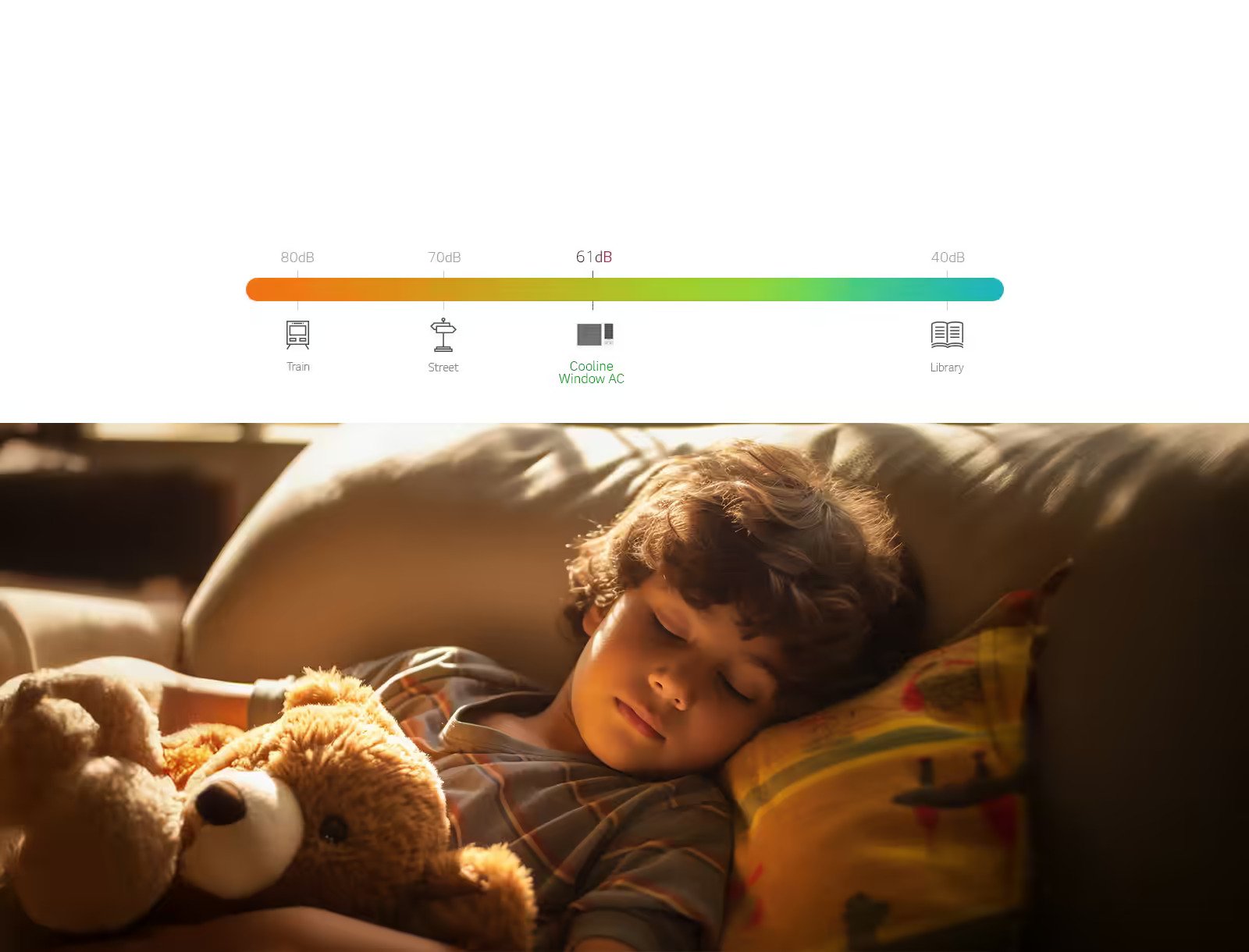 Quiet cooling you can relax withCooline window air conditioners are designed to operate at a comfortable noise level, helping create a calm and peaceful indoor environment