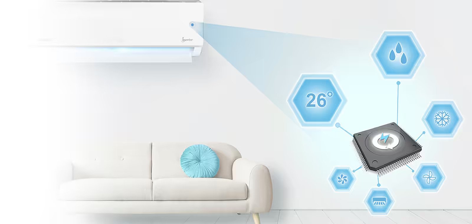 Cooline inverter systems intelligently adjust performance in real time, delivering efficient cooling while adapting to room conditions and usage patterns